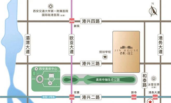 保利锦上周围七大公园环伺,奥体中轴生态公园(在建)、启航公园、新寺遗址公园、陆港足球主题运动公园、全运湖公园、4A级浐灞国家湿地公园、社区公园(在建),打造城市绿肺,拥抱鲜氧生活。