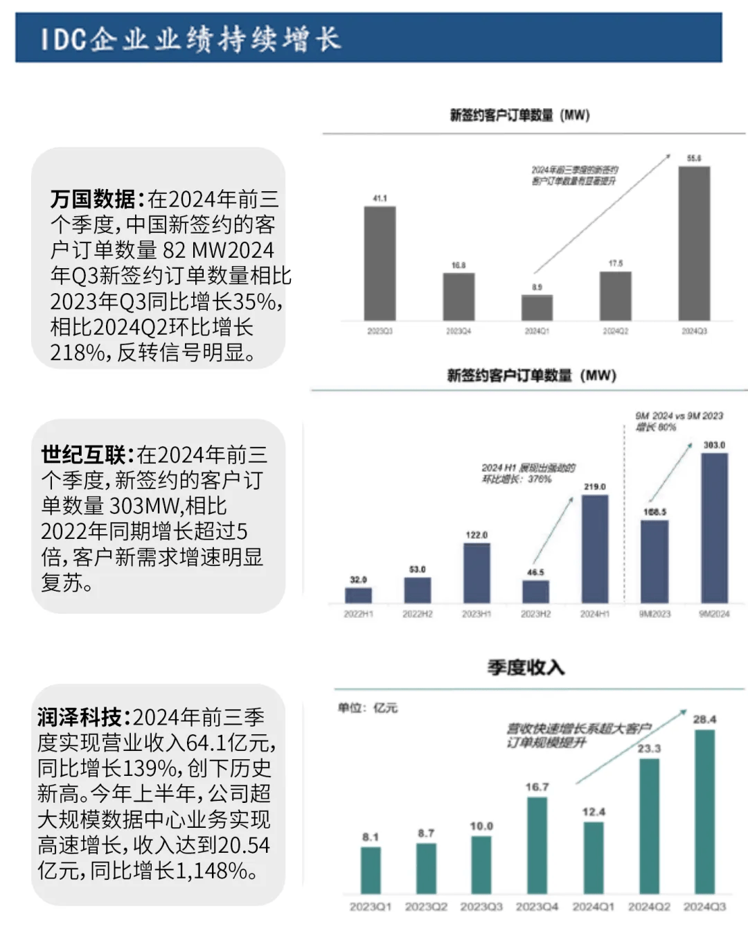 •华南地区:形成两个租金梯队:广州、深圳为第一梯队,服务费在1,020-1,250元/月/kw;第二梯队为东莞、惠州、佛山,服务费在860-1,140元/月/kw。华南地区整体签约率在60%-80%。