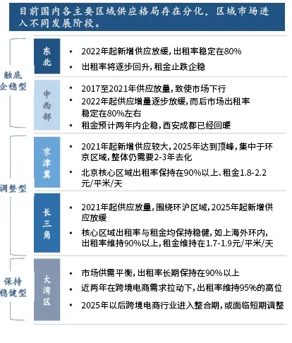 2024年各区域主力需求来源呈现多样化。在京津冀地区,新租需求主要由第三方物流企业主导;在大湾区,主要需求来源于跨境电商龙头企业;而长三角地区新兴行业如光伏等的需求扩张显著。