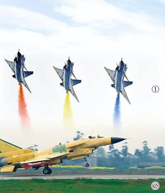 图①:2016年,歼-10飞机航展表演。朱鹏摄;图②:1998年3月23日,歼-10飞机01架首飞滑跑。李勇摄