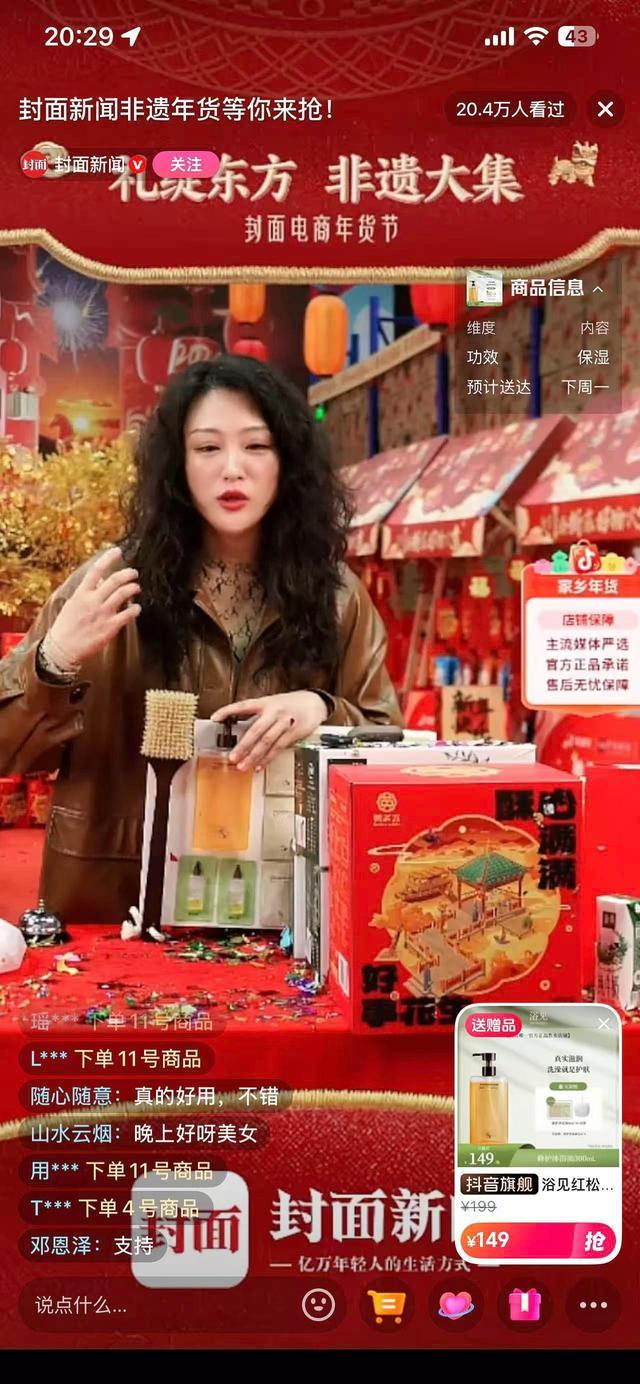 值得关注的是,媒体主导的年货专场直播热度持续攀升,成为非遗传播与年货消费的重要桥梁。作为封面新闻2026春节特别策划的重要组成部分,